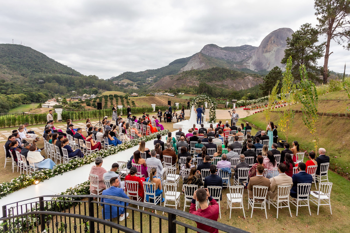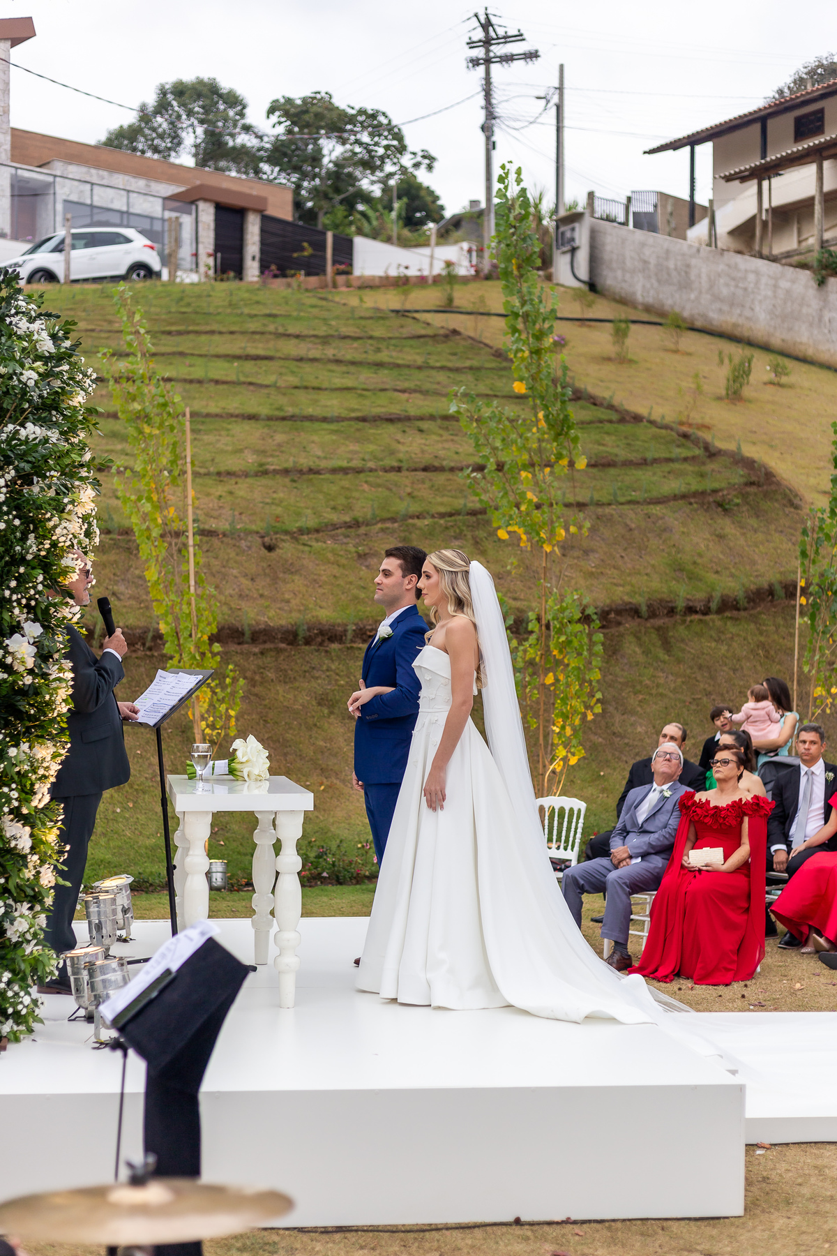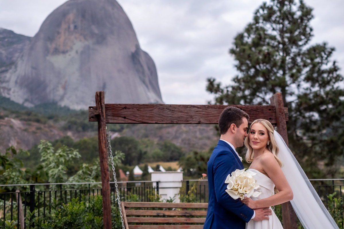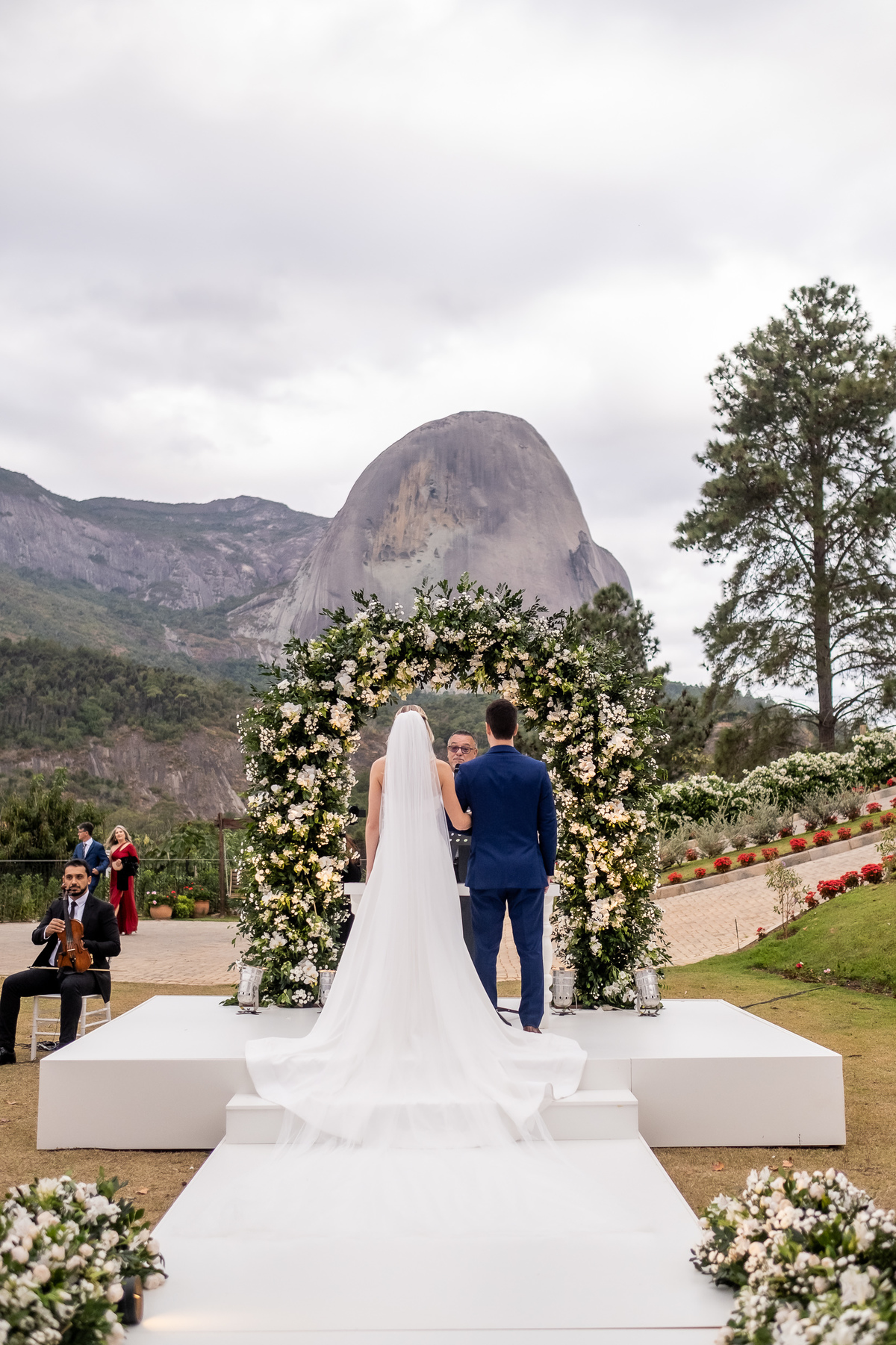 A cerimônia em Pedra Azul, com sua vista para as montanhas e o toque natural envolvente, proporcionou uma atmosfera romântica e acolhedora. O céu nublado apenas acentuou a serenidade do dia, fazendo com que cada momento fosse capturado com uma suavidade e elegância única, tornando o cenário ainda mais especial.