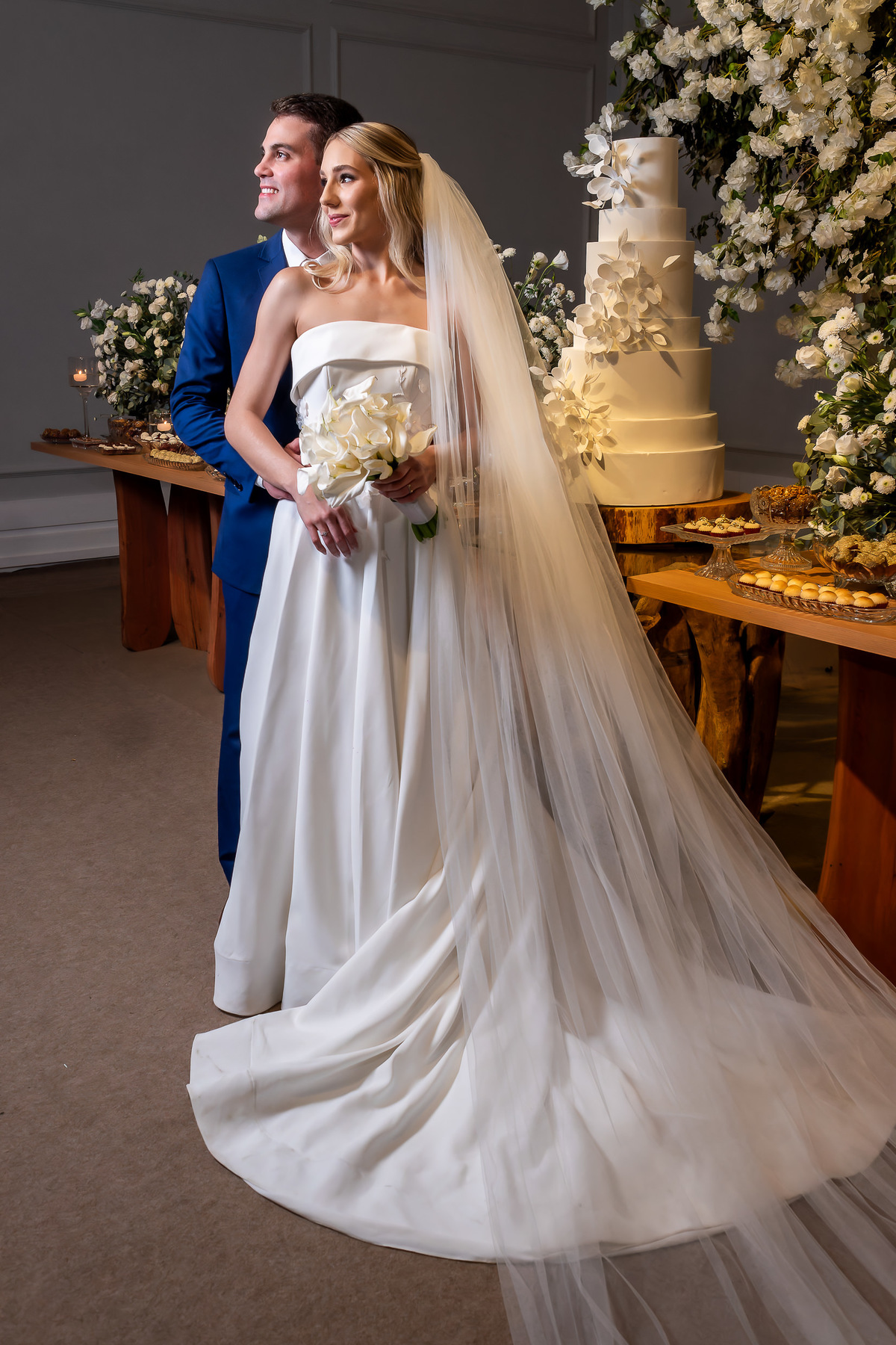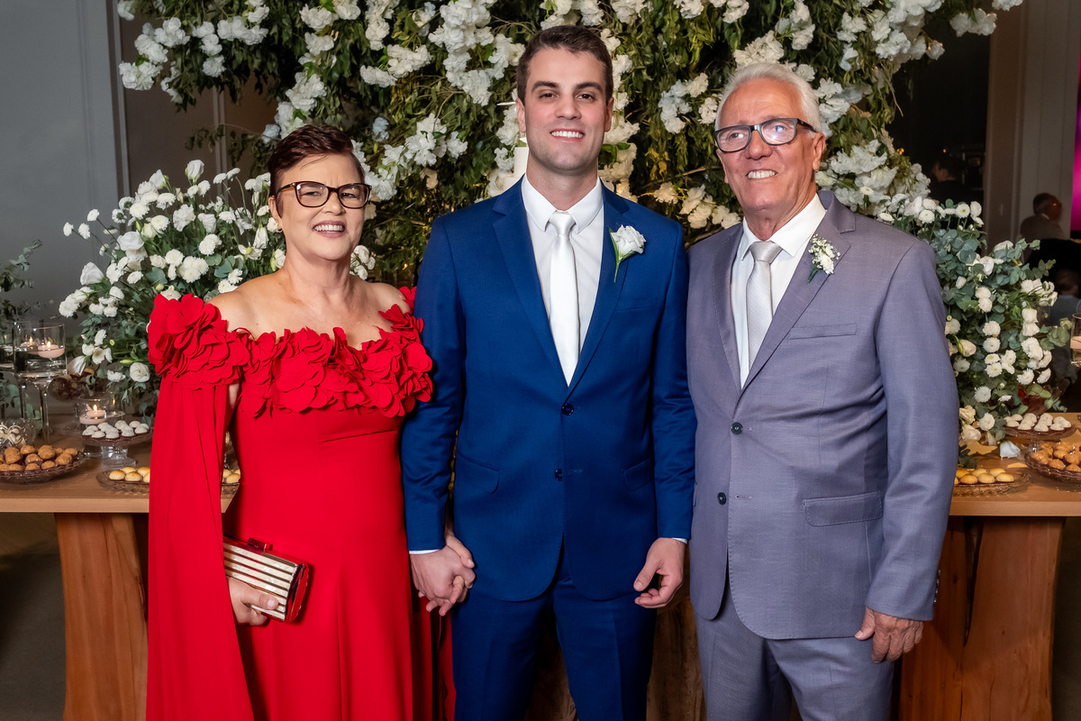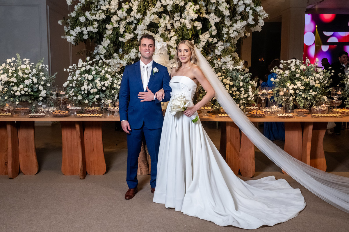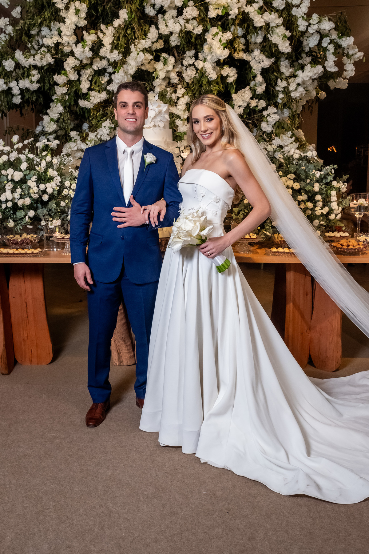 Duda, com sua elegância serena e uma beleza impressionante, foi o centro de todas as atenções. Seu sorriso fácil e olhar radiante fizeram com que sua presença iluminasse todo o ambiente, trazendo um toque especial a cada detalhe. Ao seu lado, Samir, com seu carisma e simpatia, trouxe leveza e alegria, complementando perfeitamente o clima de celebração e emoção.