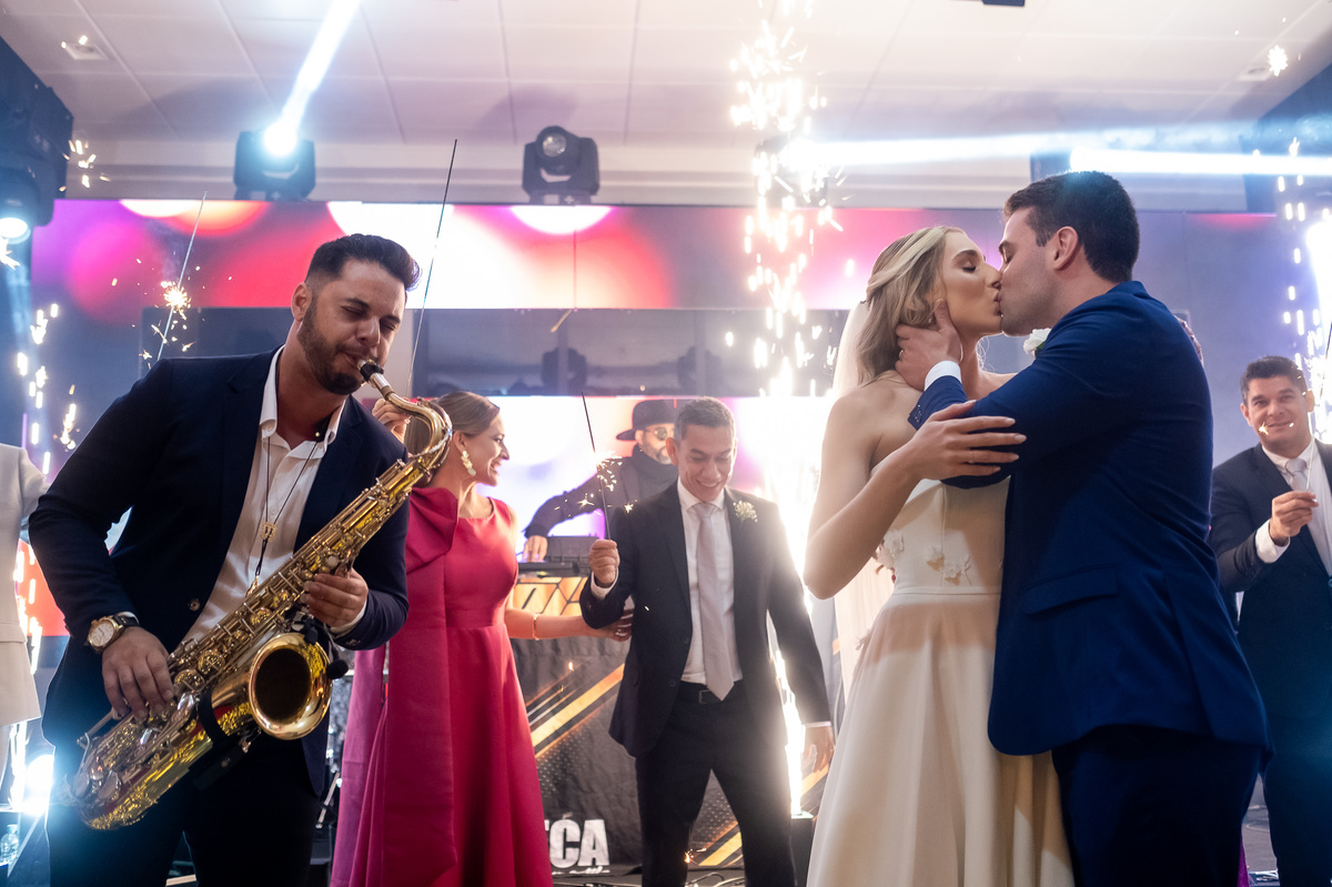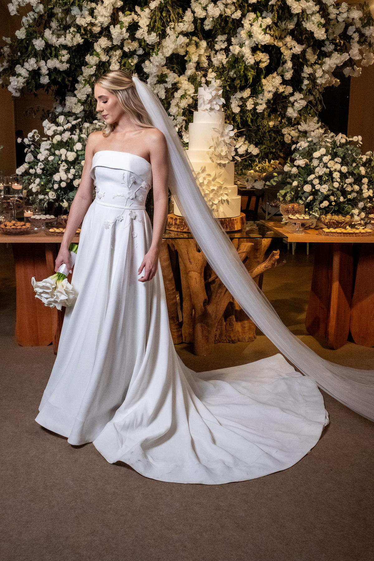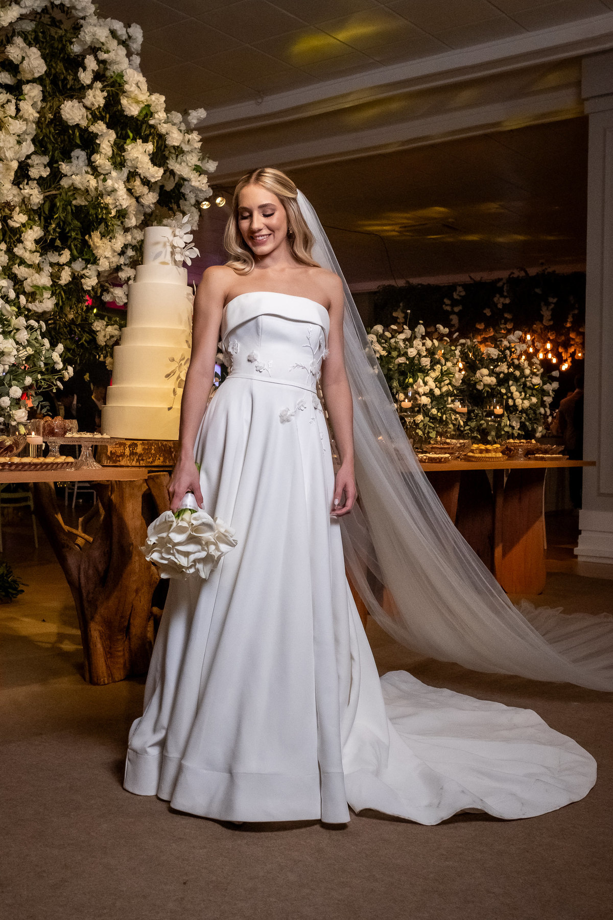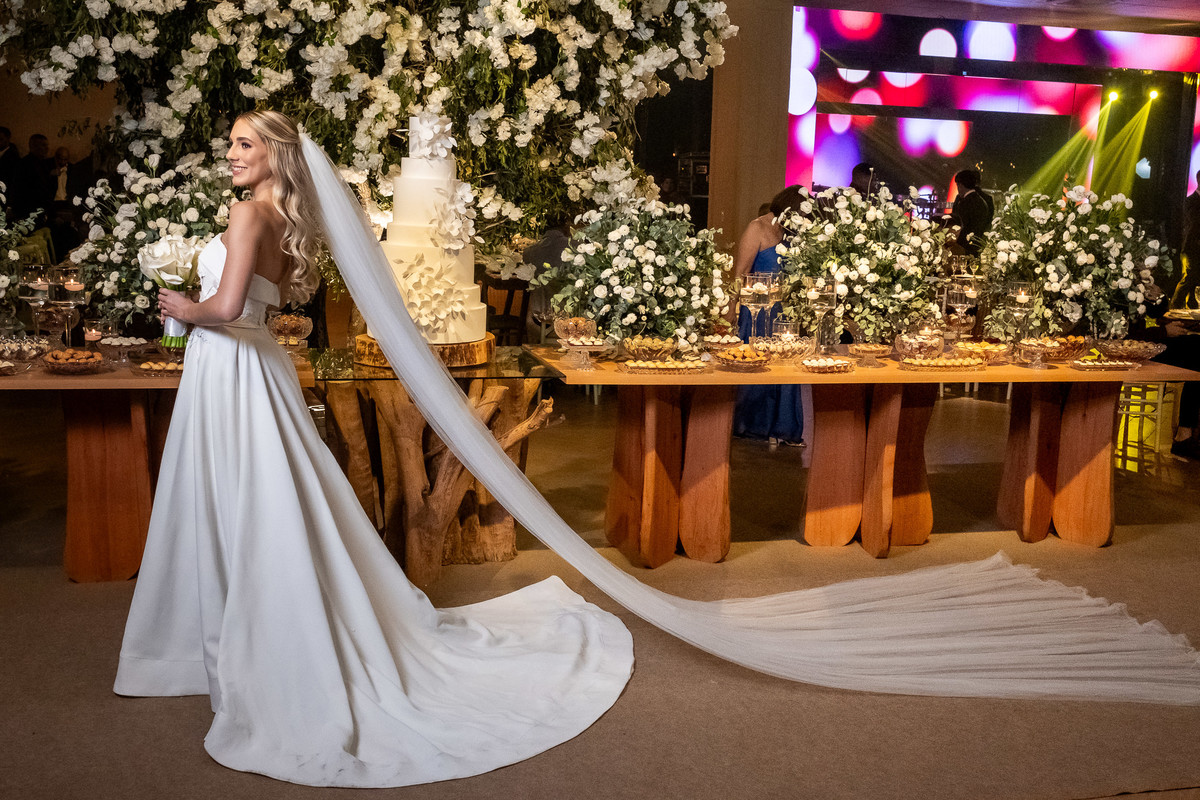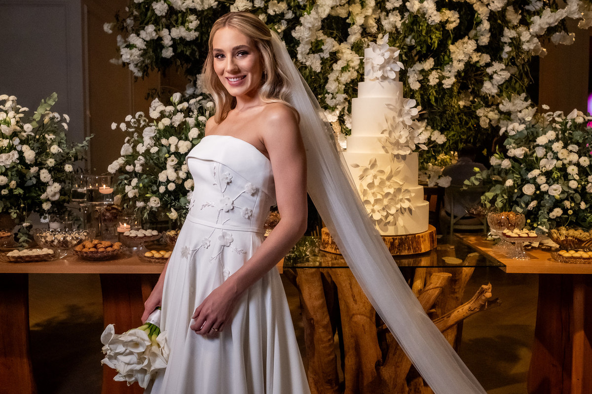 Duda, com sua elegância serena e uma beleza impressionante, foi o centro de todas as atenções. Seu sorriso fácil e olhar radiante fizeram com que sua presença iluminasse todo o ambiente, trazendo um toque especial a cada detalhe. Ao seu lado, Samir, com seu carisma e simpatia, trouxe leveza e alegria, complementando perfeitamente o clima de celebração e emoção.