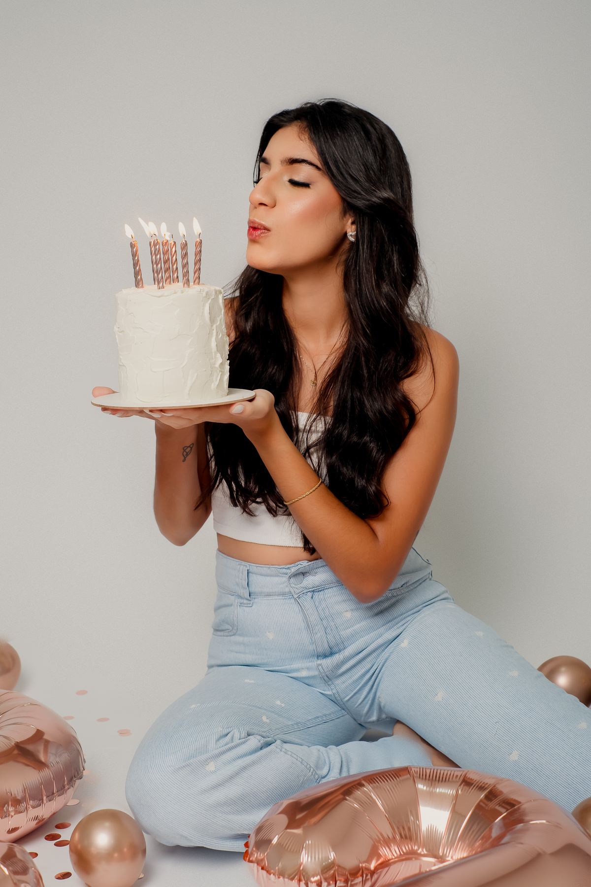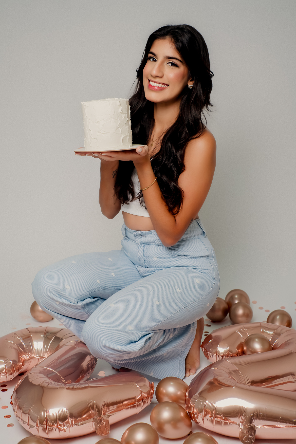 Yasmin, uma maquiadora cheia de talento, escolheu marcar seus 22 anos com um ensaio fotográfico em estúdio que capturasse sua essência vibrante e sua paixão pela arte. Cercada por balões e um bolo que simbolizavam a celebração, cada foto revela não apenas a beleza de Yasmin, mas também sua alma criativa.