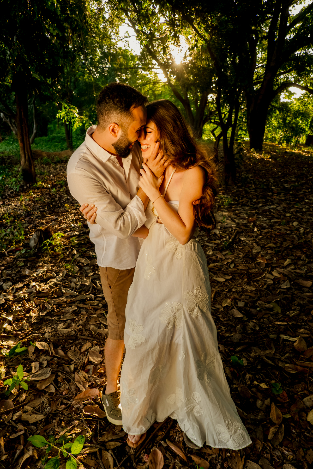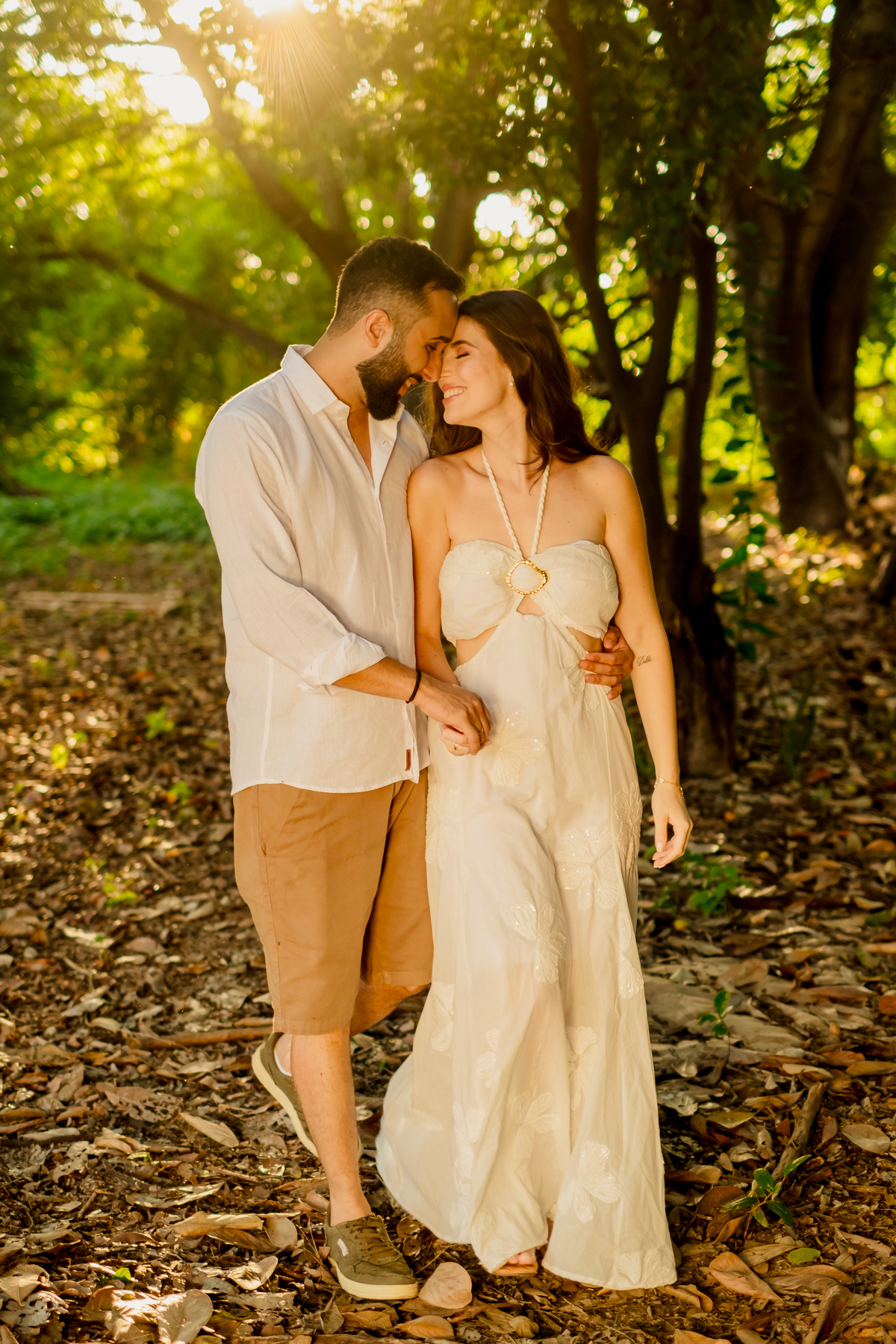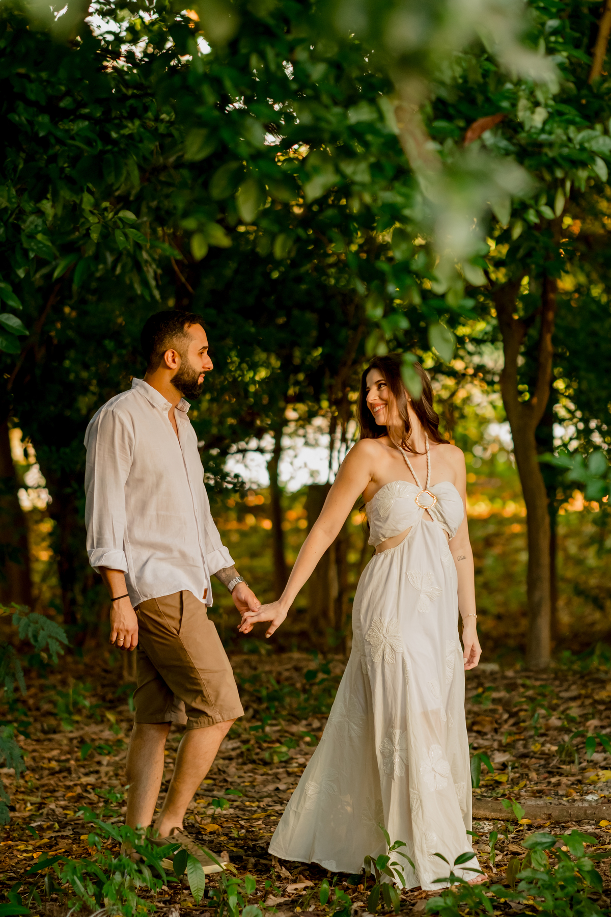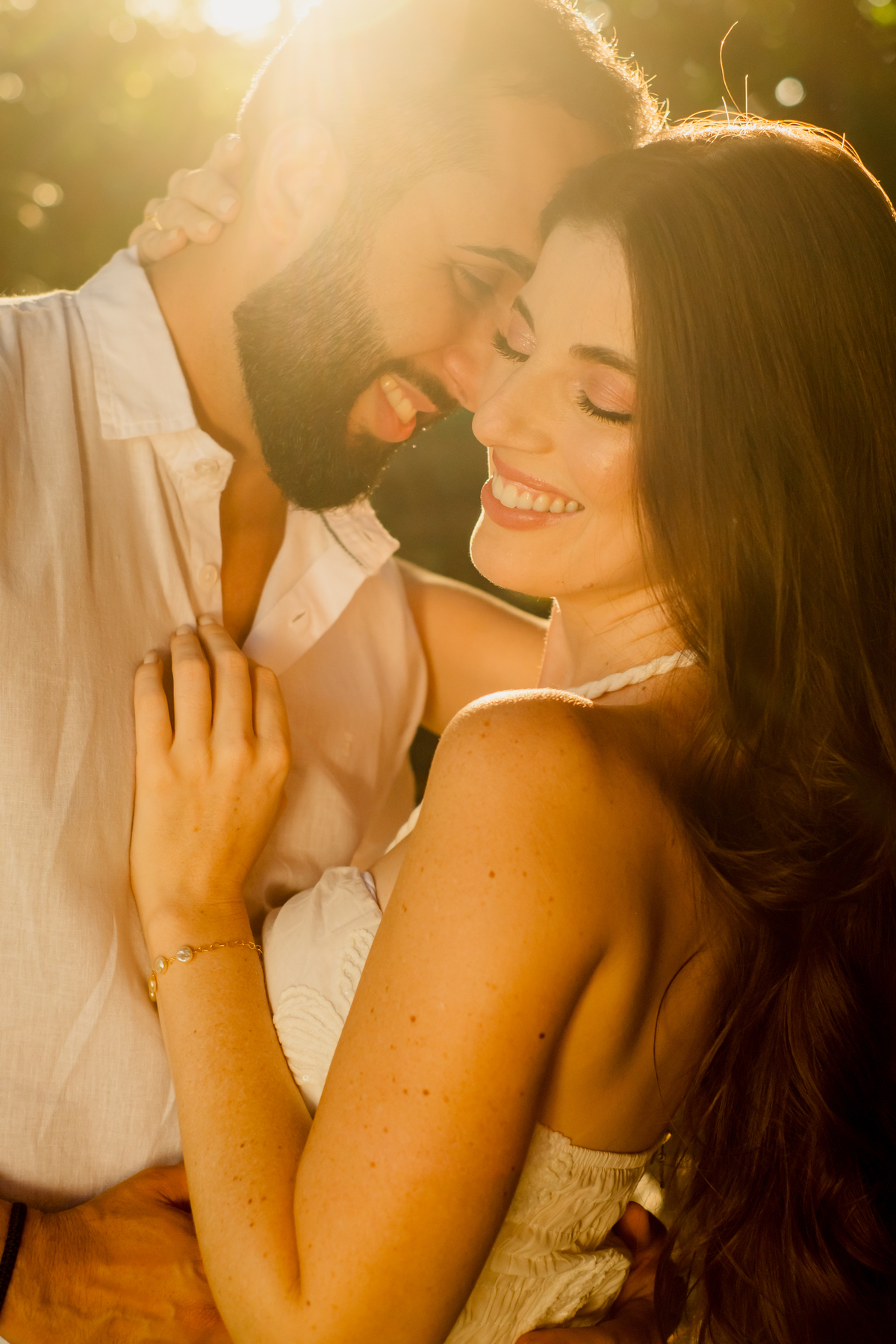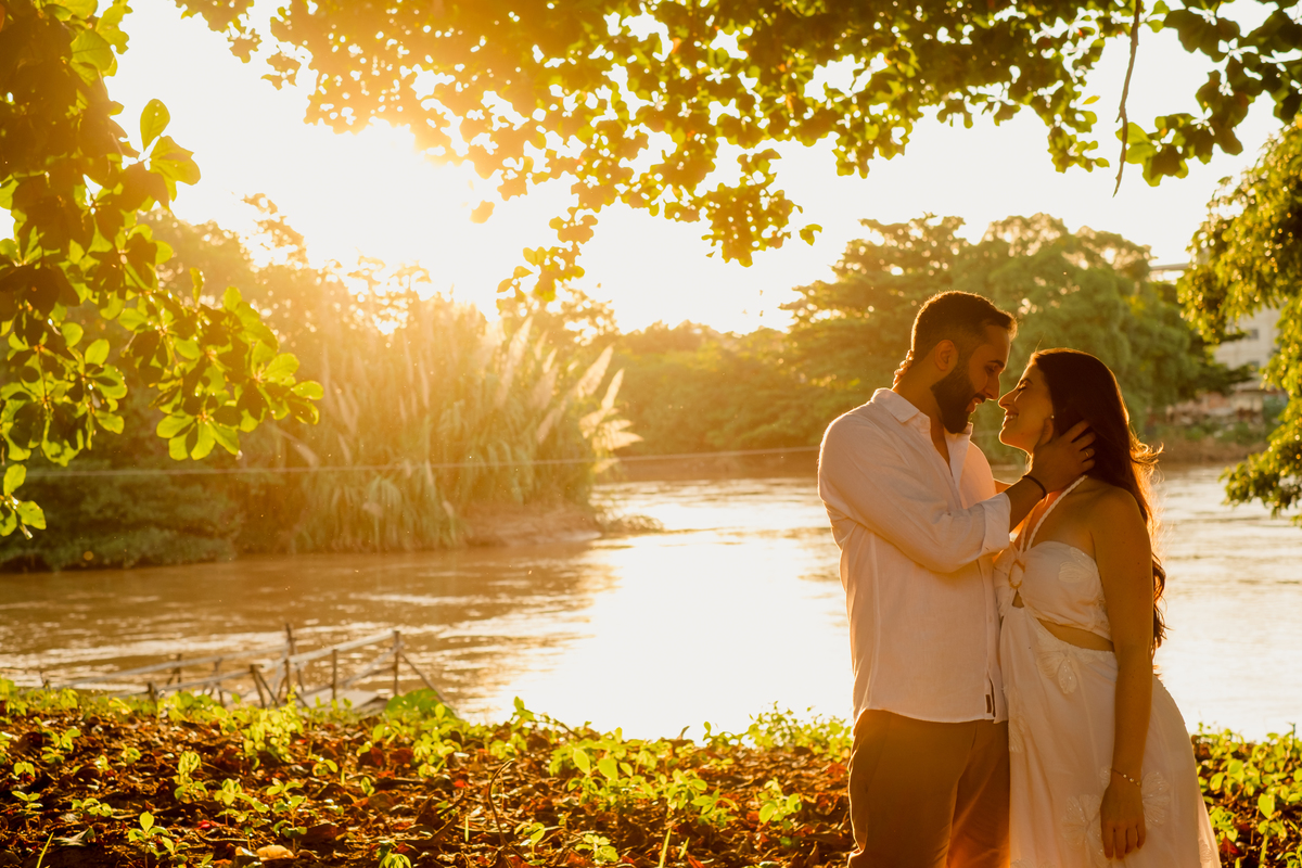 Para fechar o dia, a natureza. A luz dourada do fim de tarde transformou a elegância em liberdade pura, com direito a pés descalços e aquela risada solta de quem está se divertindo de verdade. Um ensaio, três momentos, e a essência deles em cada clique.