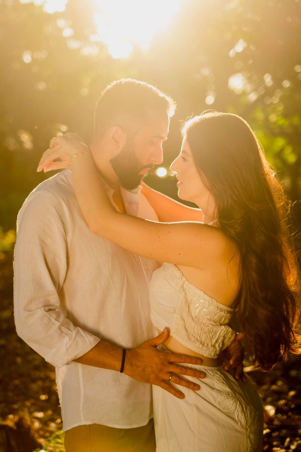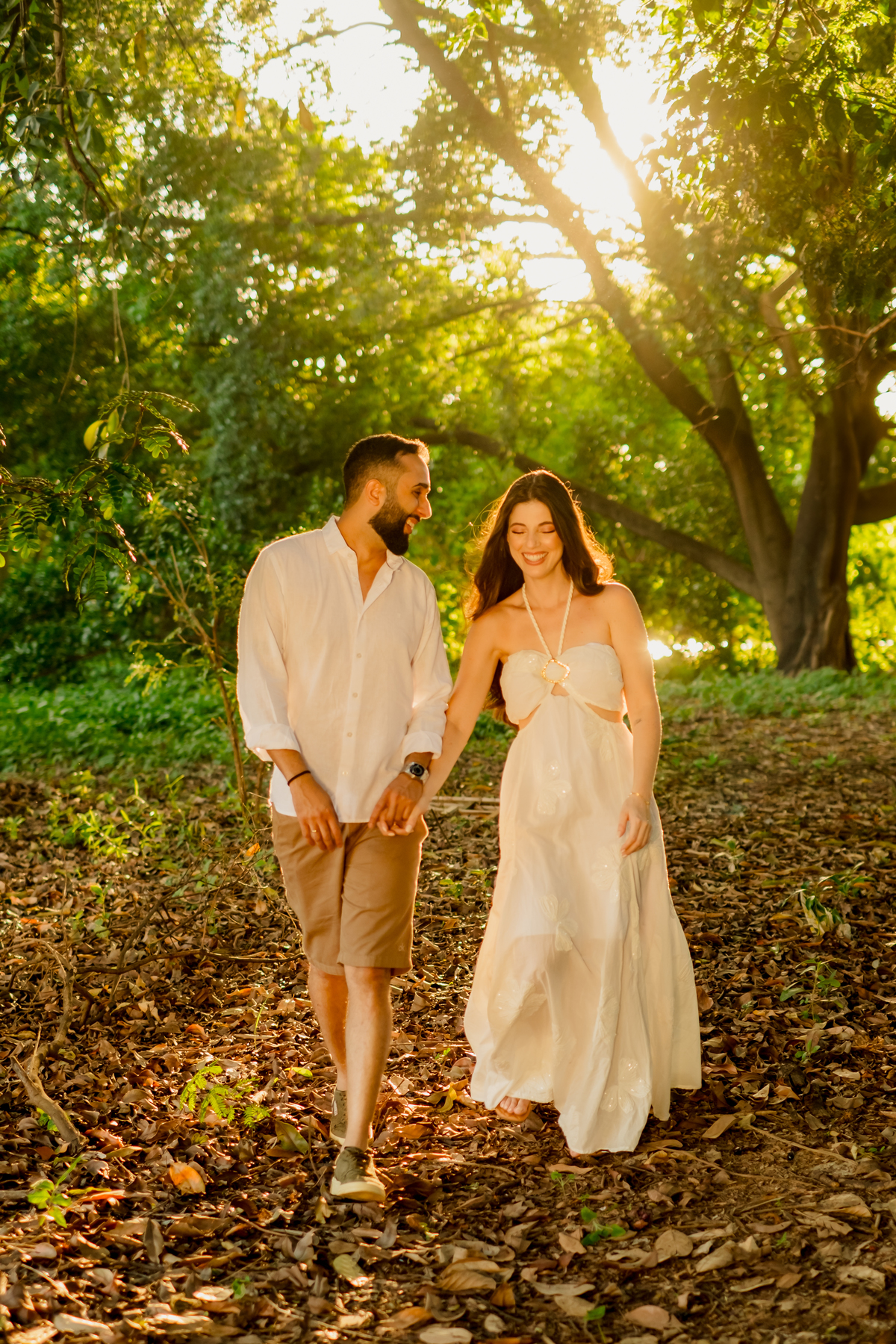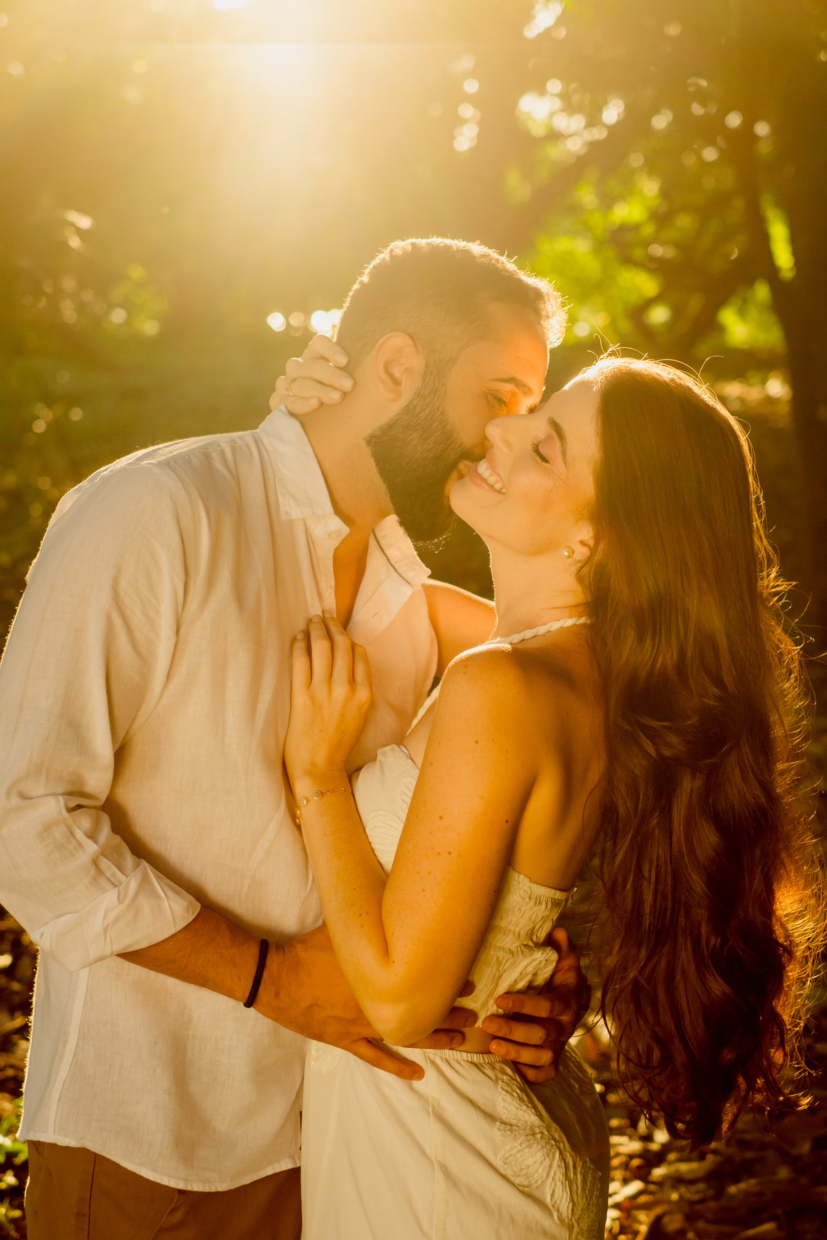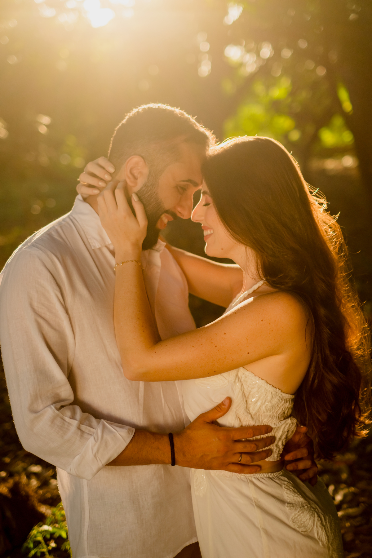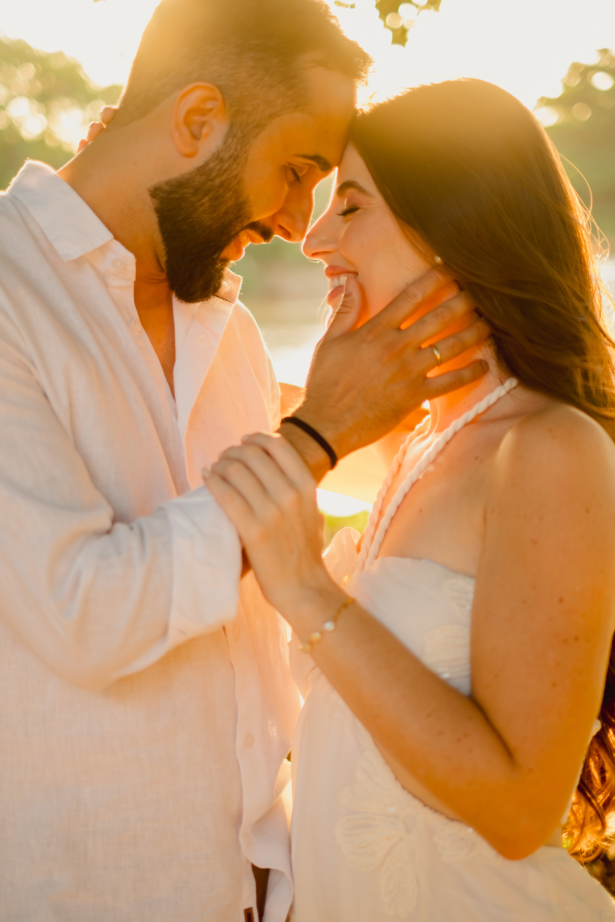 Para fechar o dia, a natureza. A luz dourada do fim de tarde transformou a elegância em liberdade pura, com direito a pés descalços e aquela risada solta de quem está se divertindo de verdade. Um ensaio, três momentos, e a essência deles em cada clique.